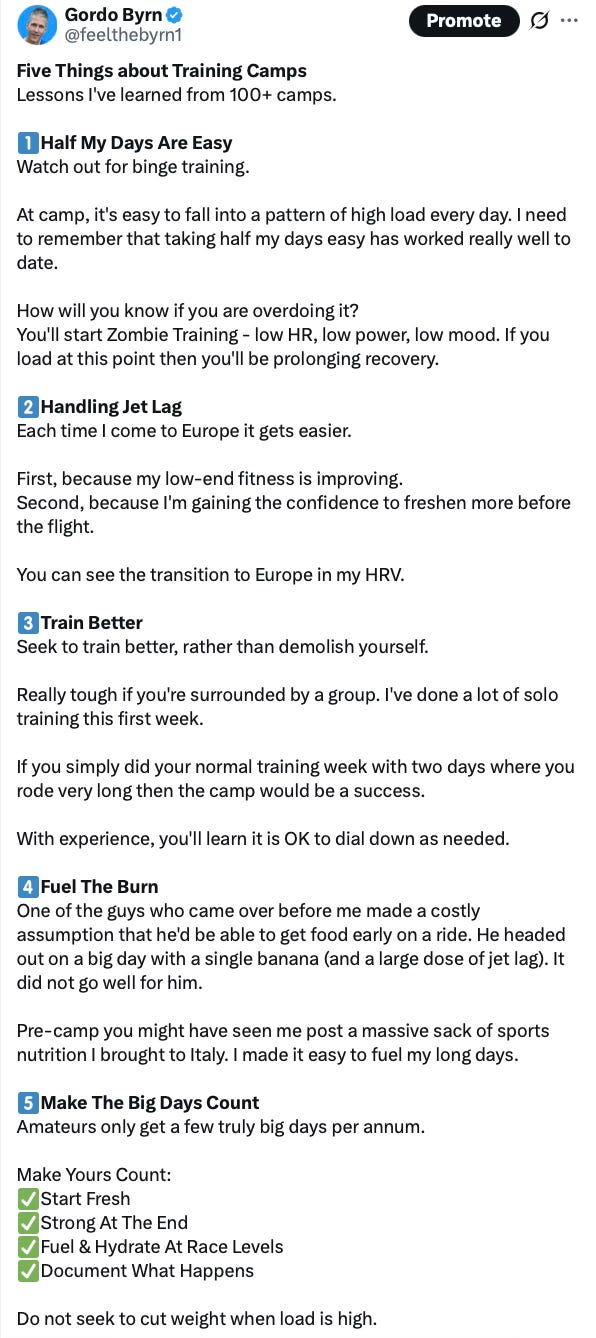 I banged out a 31 hour training week and felt pretty good.1 So I want to expand on the general thoughts I shared on X.